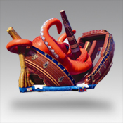 This pirate ship is perfect for any party or event. With a drop slide of 28 ft. it will surely send your timbers screaming, with a dual-lane slides.