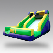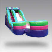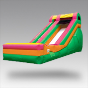 This slide is a great theme for a tropical or beach themed bash. Dual lane water slide with a pool of water on the bottom