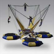 Giant four station Euro Bungy is suitable for all ages with a weight limit greater than 30 lbs and no more than 225 lbs. Space required is 30' x 30' in diameter and height clearance of 25'.