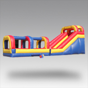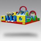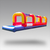 The Adrenaline Rush II - The left and right sides of the inflatable obstacle course begins with log obstacles, a rock climb with slide and a crawl to the finish through a tube. This bright and colorful obstacle course is sure to be a hit at your next event!