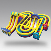 The Extreme is a winding 1,850 square foot dual lane maze of adrenaline-inducing activities! This inflatable obstacle course offers a dual-lane climb and slide, a curved dual lane obstacle track and a double lane slide/obstacle track combo.