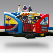 The Justice League - Super Heroes challenge brings out thesuper heroes in the kids. Kids can battle their way through obstacles and go down the slide.