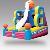 The Full court press inflatable basketball game is the perfect addition to any indoor or outdoor event. Players will be lining up to take their shot at the dual hoops, which allow for plenty of action, fun and competitive spirit as players shoot it out with full-size basketballs