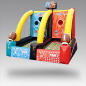 The Mini-hoops inflatable basketball game is the perfect addition to any indoor or outdoor event. Players will be lining up to take their shot at the dual hoops, which allow for plenty of action, fun and competitive spirit as players shoot it out with mini basketballs