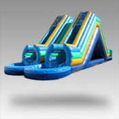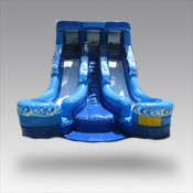 The Double Splash Slide is a great way to promote enjoyable and healthy activity, and will add excitement and value to your outdoor event! With a variety of colors, shapes and themes, the inflatable water slides from Events offer kids of all ages an endless amount of aerobic activity. - Water access must be within 100 feet.