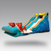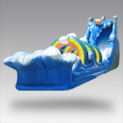 The California Wave wet slide brings a hang ten opportunity to your guests, with fantastic details that make this an inflatable no one will want to miss. Riders will be yelling "Bonzai" as they enter this amazing ocean-inspired horizontal slide, and then cruise from the pool to the curving wave crest on the other side. - Water access must be within 100 feet.