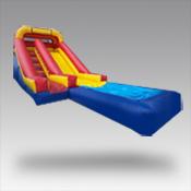 The BMX (65x15x22)- This awesome looking inflatable offers 65 feet of sliding fun! You start at the top of a 22 FT Slide that goes right into a slip n slide. Looks great!